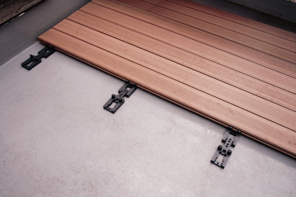 ・ビス不要の工法など現場に応じて4種類の施工法が選べる「エス・ウッド デッキシステム」