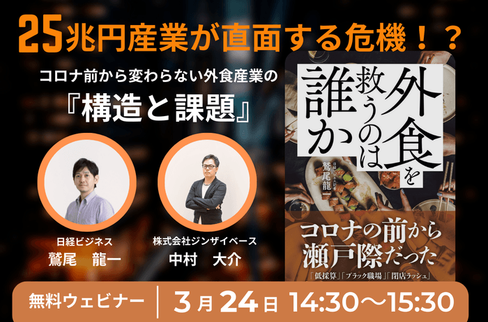 日経ビジネス記者鷲尾氏登壇!『25兆円産業が直面する危機!? - コロナ前から変わらない外食産業の「構造と課題」』をテーマに オンラインセミナーを3月24日(金)に開催