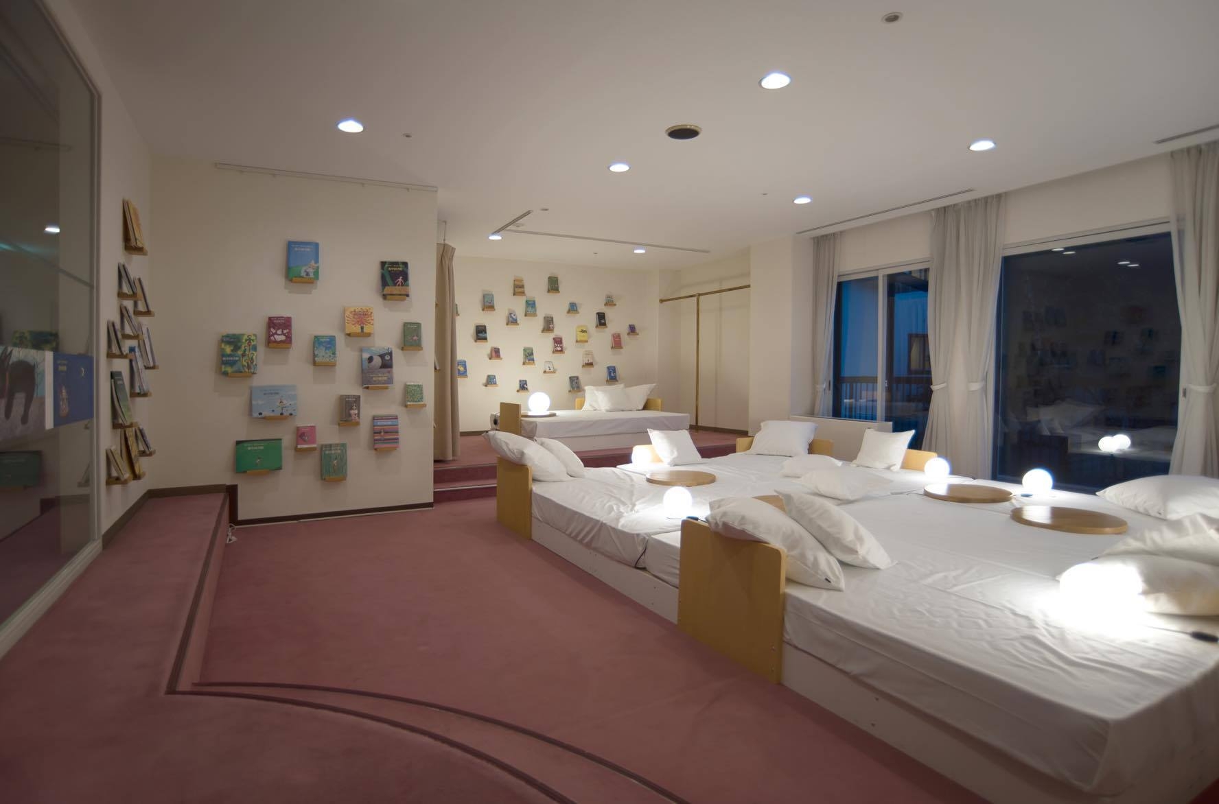 くろよんロイヤルホテルでは同期間中「ホテル×アート」を開催します。コンセプトルームと図書室、超巨大こけしの展示など、さまざまなアート作品を館内外に展開中。