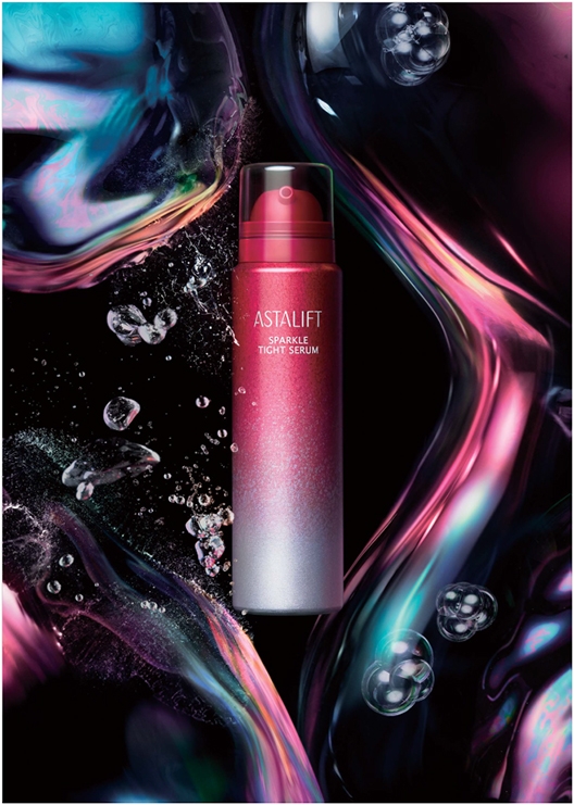 今回発売する「アスタリフト スパークル タイト セラム」は、パチパチと弾ける泡で、肌を引き締める美容液です。独自技術によって開発した成分「ナノスパークルショット」5が、毛穴から肌に浸透2。美容成分を含んだみずみずしい泡が弾けて肌に刺激を与え、ジェルに変化した美容液が肌の上に広がり、肌を引き締めます。さらに、アスタリフトシリーズの特徴成分である「ナノアスタキサンチン」*7や「ナノリコピン」*8、「3種のコラーゲン」*9などの豊富な美容成分を配合し、肌のハリやうるおいもしっかりケアします。