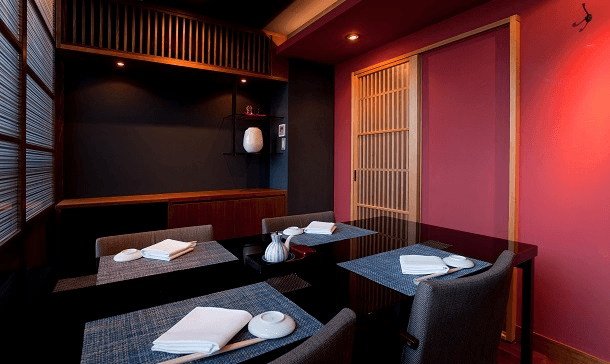 2名~6名様までご利用可能な完全個室は、黒を基調にしたモダンで落ち着いた雰囲気が重要な接待や大切なシーンでも、ここぞという時の切り札になる神楽坂の隠れ家です。