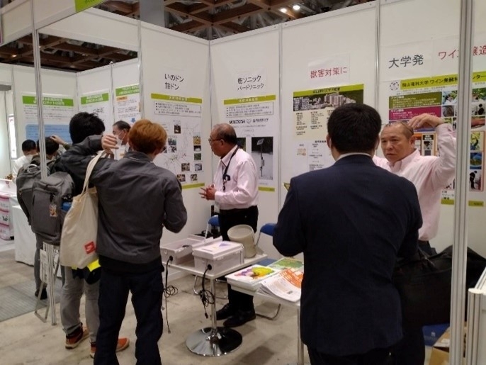 「スタートップが未来をつくる~産学官連携イノベーション~」をテーマに農林水産省が主催する「アグリビジネス創出フェア」が11月20日~22日、東京都江東区の東京ビッグサイトで開催されました。岡山理科大学は低周波音と高周波音で獣害を回避する装置と大学発のワインを紹介するブースを設けて、研究力をアピールしました。