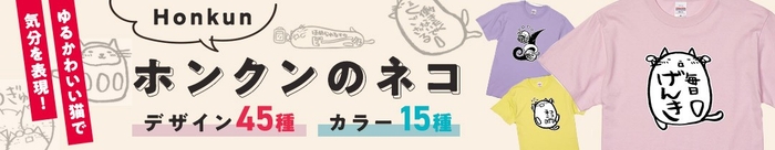 【4/5新発売】テレビで話題の墨絵作家Honkunが描く「ホンクンのネコTシャツ」全45デザイン×15カラー展開