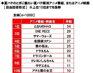 ◆夏バテのときに観たいアニメ 1位「となりのトトロ」、「君の名は。」が5位に