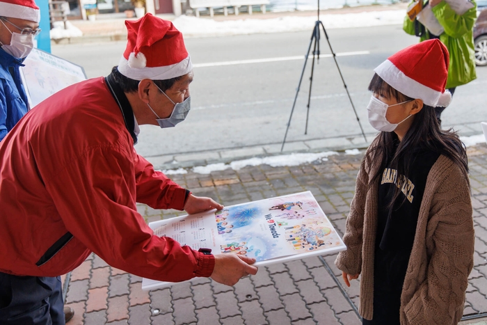 2021年12月24日(金)、青森県十和田市の商店街にある相坂屋前で、市民団体インバウンド十和田(米内山 和正会長)が制作した2022年度版「We Love Towada」オリジナルカレンダーの贈呈式が行われました。