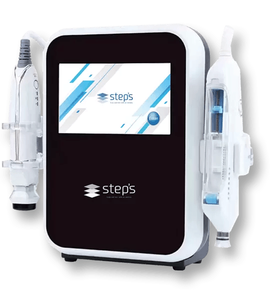 『Step’s』ではエアニードルにて幹細胞培養液を噴射塗布いたしますので、ほうれい線やシワへのアプローチも効果的に行うことが可能です。スカルプメニューの他、フェイシャルメニューのバリエーションにも使用できますので1台の導入にて複数のメニューの作成が可能でございます。頭皮改善に使用だけではない多機能性も『Step’s』が選ばれる要素となりますので、五反田ショールームでの発表体験会にてぜひ噴射塗布の性能をご体験下さいませ。