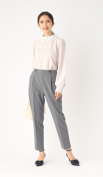 シンプルなセンタープレス入りの、テーパードシルエットパンツ。