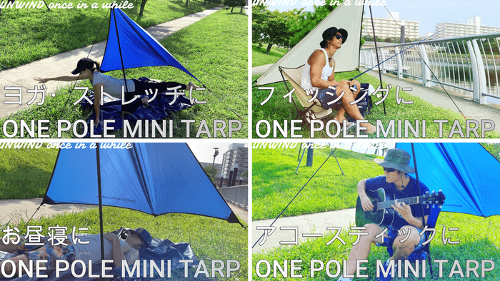 野外で簡単に設置できるコンパクトミニタープ|ONE POLE MINI TARP 【Makuake目標1000%達成】