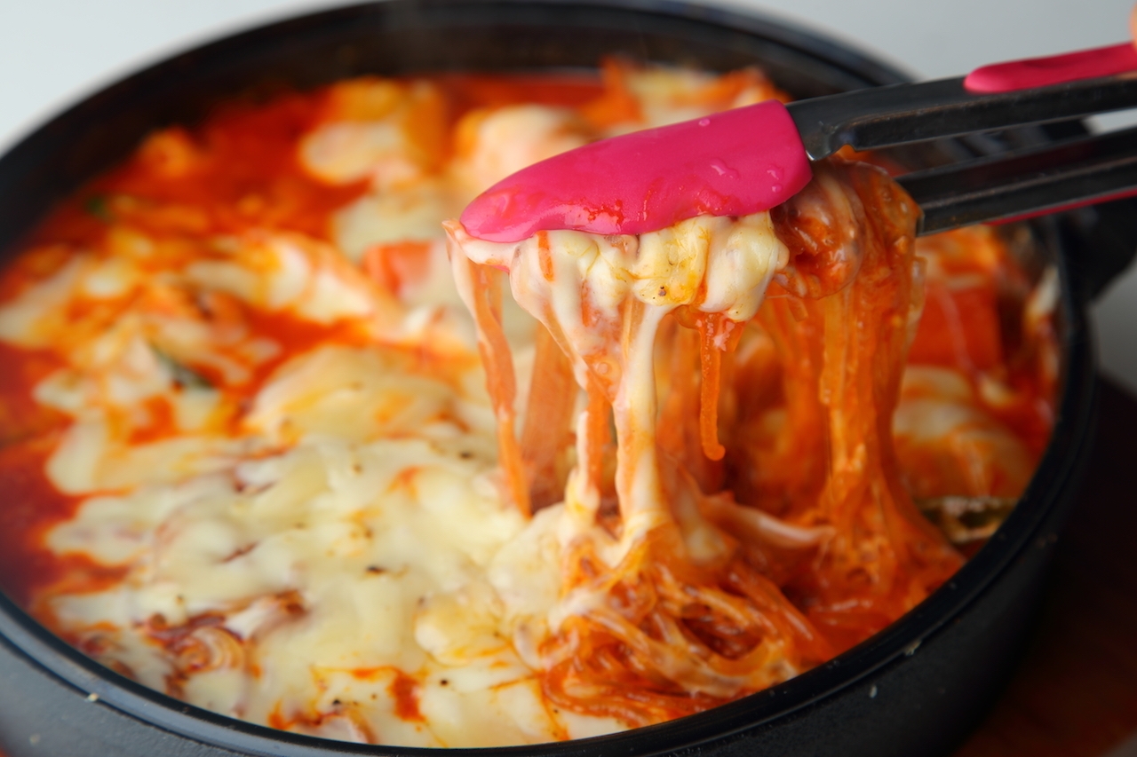 メウン(辛い)チムタクにチーズをトッピングし、まろやかに仕上げました。