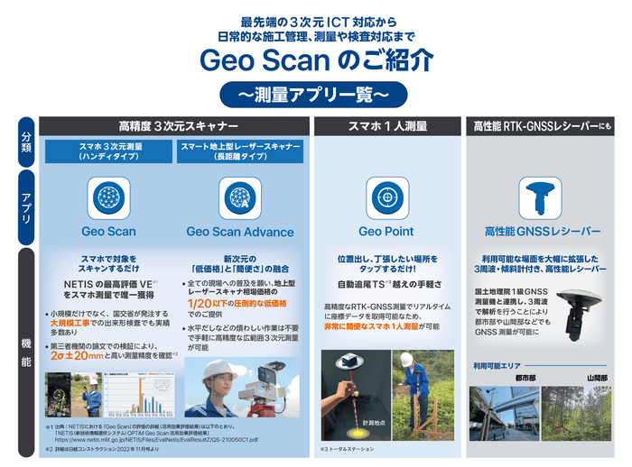 「Geo Scan」の各アプリが幅広い用途で使用され、さまざまな工程での生産性向上を実現しました。