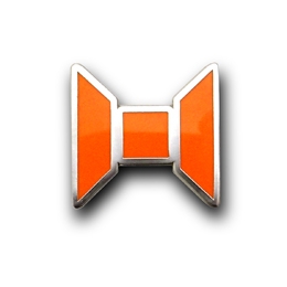 同社様の基幹事業である「摩擦圧接加工」と社名である光工業の「H」をデザインモチーフにした新しいマークは、創業の原点が織機であることもあり、「糸巻き」もイメージされているそうです。コーポレートカラーのオレンジ色で着色された社章は、役員の方をはじめ、部署長様、営業社員の方々に配布され、皆さん毎日着用されているとのこと。60周年を節目にして新たに始まる会社の歴史を、社員の方々の襟元で見守っていくことでしょう。