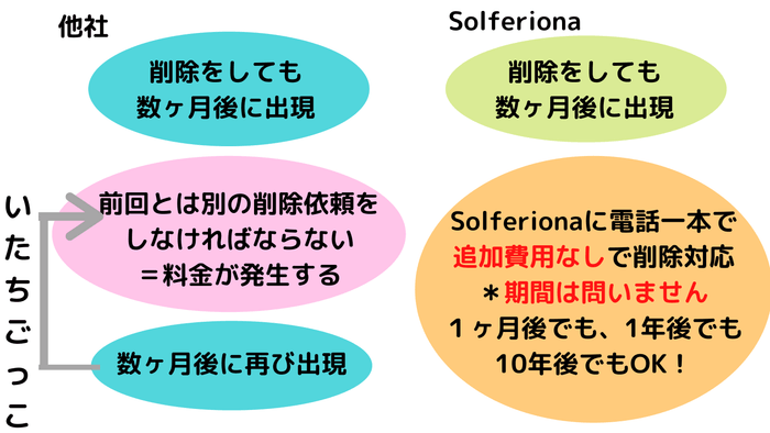 株式会社ソルフェリオーナ(東京都港区芝大門1-3-6 KITAビル 3F)では、予算がかさむことなく、風評被害対策を行えるサービスを提供しています。これは、一度風評被害対策して、ネット上のネガティブなものが再発した場合、無償で対策できるサービスです。