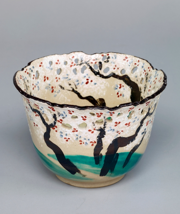 色絵桜樹図透鉢(いろえおうじゅずすかしばち)