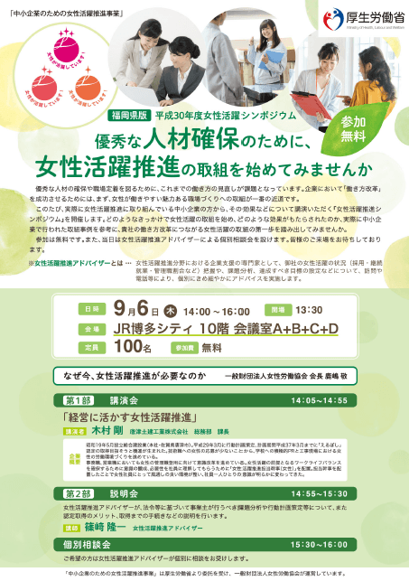 平成30年度「中小企業のための女性活躍推進事業」 (厚生労働省委託事業) 中小企業の成長のための『女性活躍推進シンポジウム』を開催