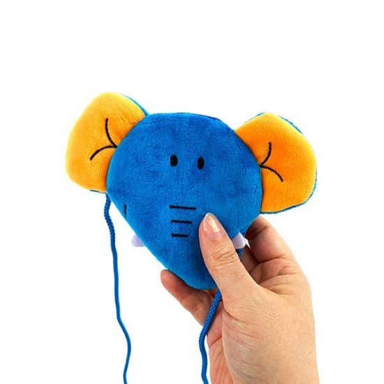 ブルーのゾウは、お耳や持ち手部分がオレンジカラーになっていて、POPな配色もキュートです。