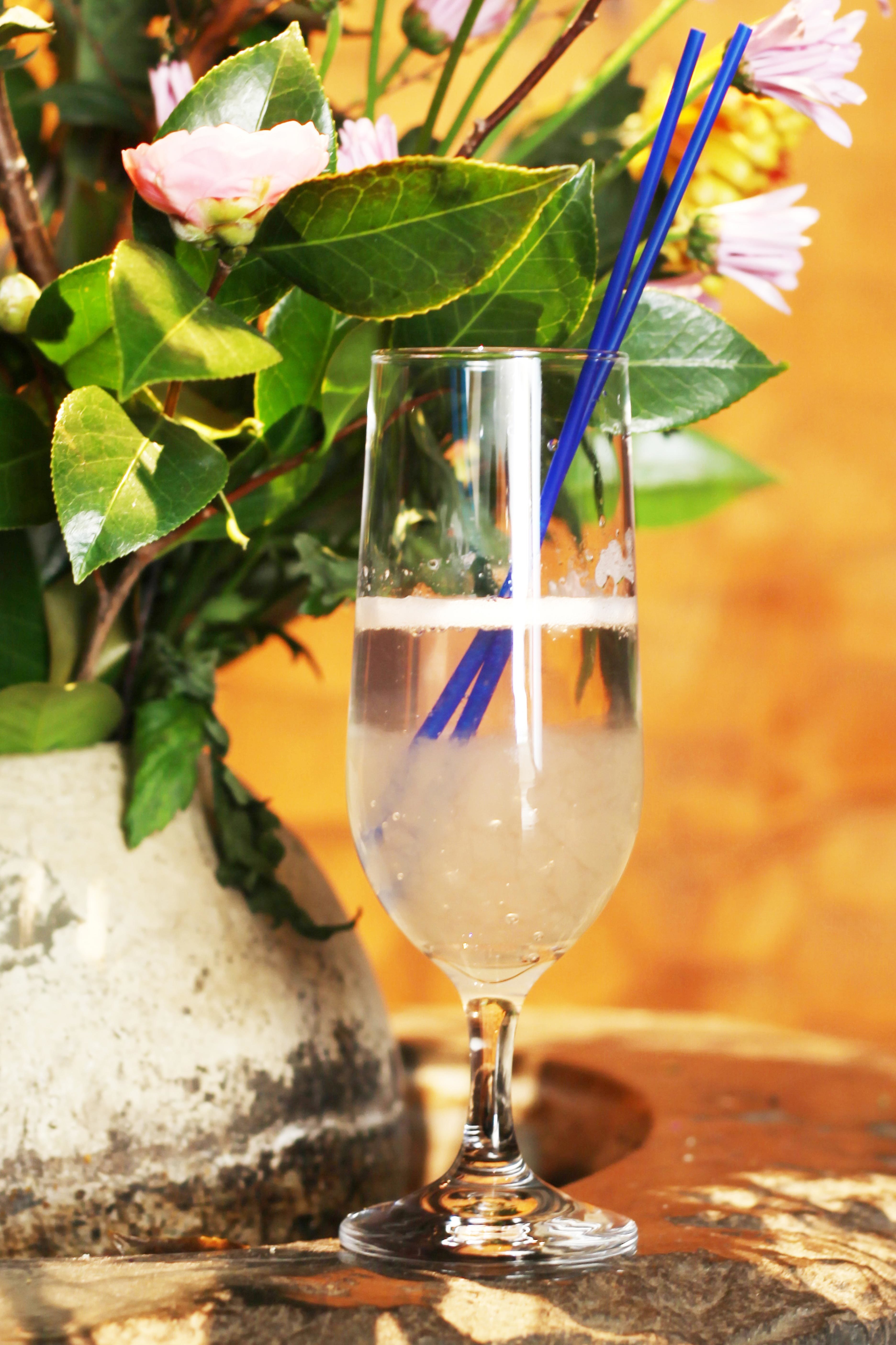 ピーチネクターと桜シロップを使いシャンパーニュで仕上げました