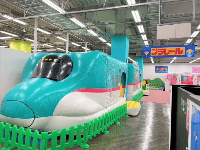 「プレイランド E5系 はやぶさ(プラレールデザインではありません)」が登場。広い車体の中で思いっきり飛び跳ねることができます。