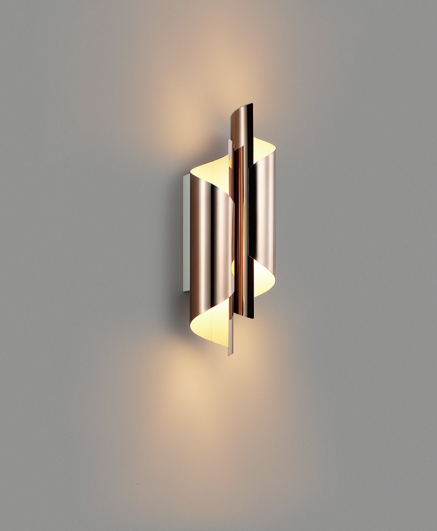 ハイグレードな空間に馴染むように、ゴージャス感をテーマとして「器具と光」の両方で華やかさを演出するブラケットライト。鋼板を巻いて作られたセードからの優しい間接光が優雅でエレガントな空間を演出します。上下の配光を均等にしたことで、下側だけでなく天井面へも光を届けることができ、空間をより華やかに彩ります。セードカラーは、マットファインホワイト塗装・ブロンズ色メッキ・黒ニッケルメッキの3色展開。特にブロンズ色と黒色はメッキを施すことで、煌びやかな雰囲気に仕上げる事ができ、内面はサテン仕上げにすることで点灯時の魅力をより高めます。