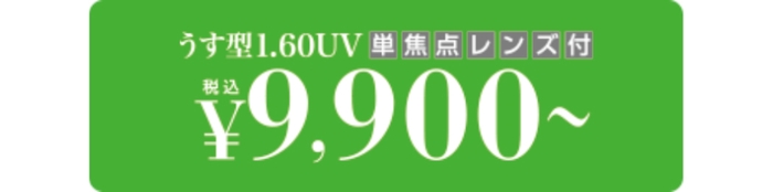 うす型1.60UV単焦点レンズが付いて、メガネ一組 税込¥9,900より、その他豊富にご用意しております。
