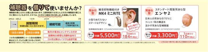 月額税込3,300円~ 定額にて補聴器を貸し出しいたします。使えるようになるか不安な方は、まずは補聴器を借りることから始めてみませんか?