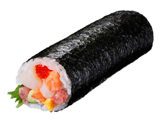北海道産帆立・まぐろ・ねぎとろ・サーモンなど海鮮がたっぷり入った太巻。