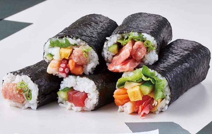 近畿圏では海老・たたきまぐろ・サーモンなど5種類の海鮮がたっぷりと入った「彩り海鮮太巻」など最大31種類の恵方巻を、首都圏では北海道産帆立・まぐろ・ねぎとろ・サーモンなど海鮮がたっぷり入った「北海道産帆立入り海鮮太巻」など最大14種類の恵方巻を、バリエーション豊富に取りそろえます。