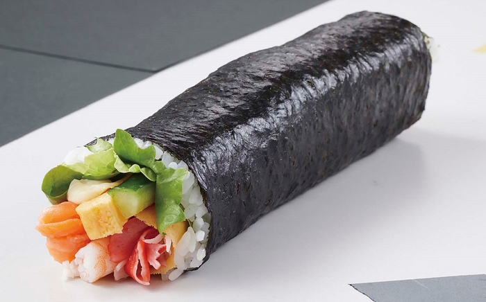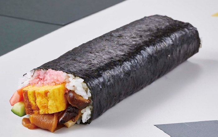 ライフプレミアム「贅沢なあご入りおだし」を配合した厚焼き玉子・高野豆腐・椎茸・かんぴょうなどの和風具材たっぷりの太巻。