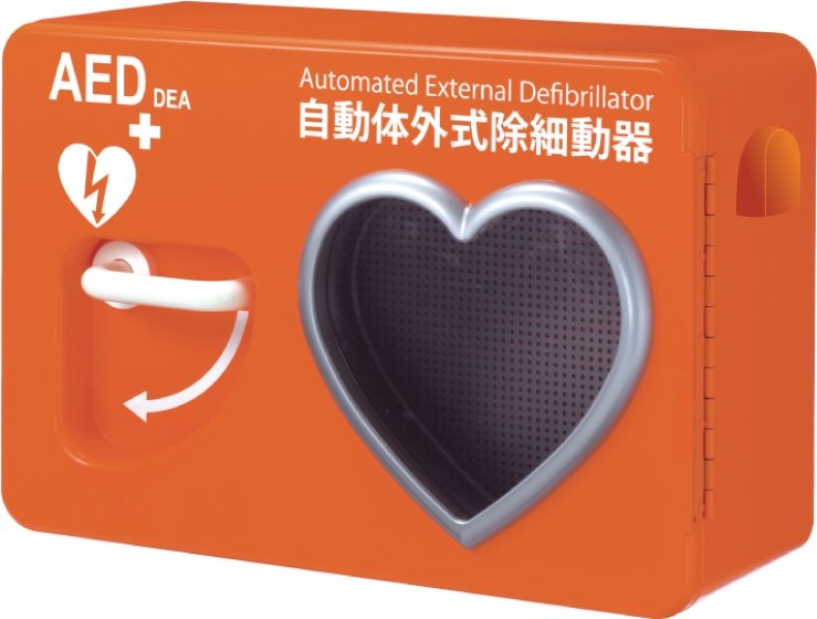 AED(自動体外式除細動器)の主なメーカーの動作保証環境温度は50度以下であり、直射日光の当る屋外では、収納ケース内の温度が高温になる事から設置は困難とされていました。