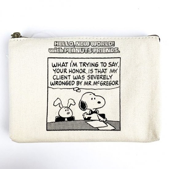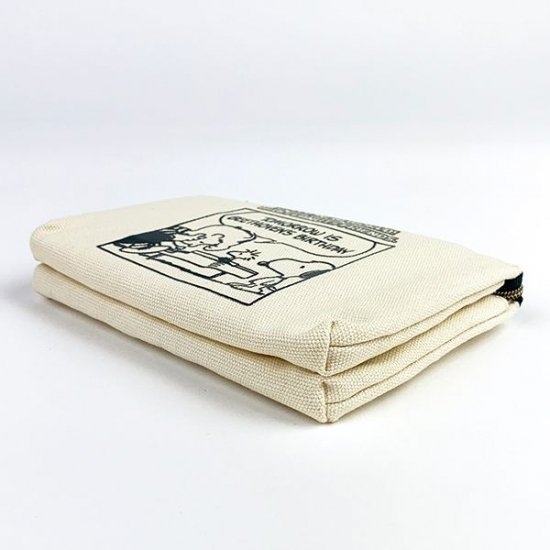 キャンバス地で使いやすい、3ポケットポーチです。アイボリーの帆布素材に、スヌーピーのコミック柄がデザインされています。