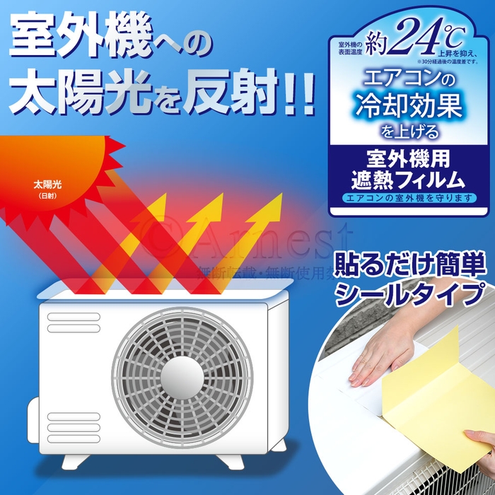 アーネスト株式会社(代表取締役:鈴木邦夫)は、エアコンの室外機に貼り付けることで直射日光を遮り、優れた冷房効果が期待できる【エアコンの室外機を守ります(4枚組)】を5月20日に発売いたしました。