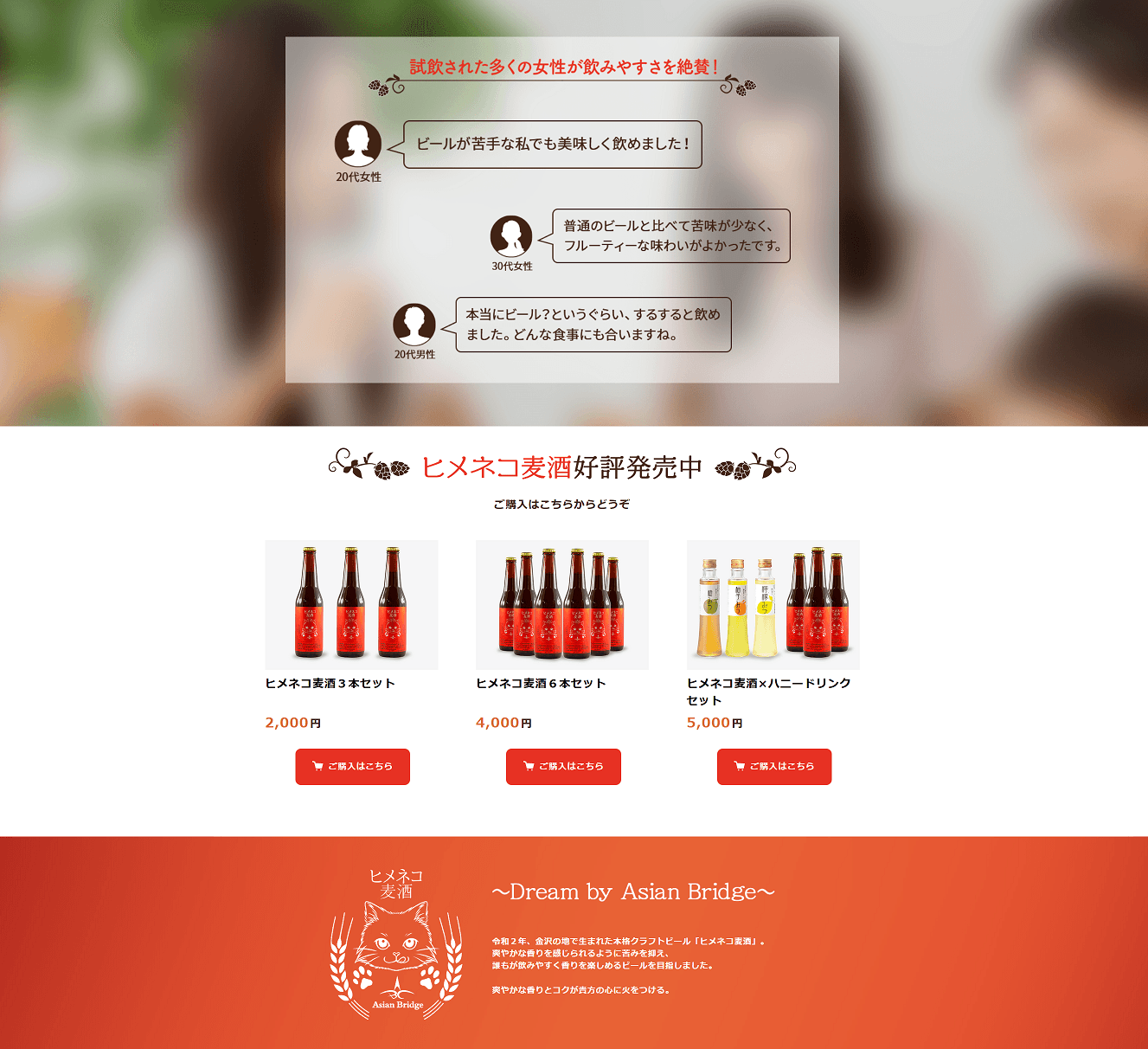 株式会社Asian Bridge(所在地:東京都港区/石川県金沢市、代表取締役:小西 広恭)は、ビールが苦手な方や女性でも飲みやすい、苦みを抑えた爽やかなクラフトビール『ヒメネコビール』を、北陸にしかない日本の本質をお届けするオンライン販売サイト「NOTOteMA」にて販売を開始しました。