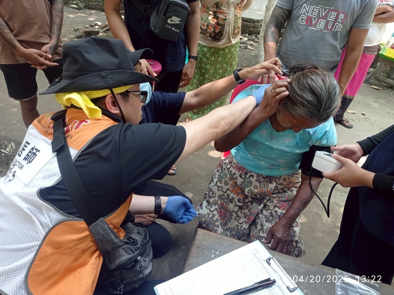今回は4月14日深夜から医師2名、18日から事務局長を現地へ派遣。震源地に近いザガインという地域でミャンマー政府に登録された国際NGOであるBarefoot Doctors Myanmar(BFDM)と連携して支援を実施。現地の看護師や日本語学校に通うミャンマー人らが通訳と診療補助を担い、共同して仮設診療所を訪れる被災患者さんや、避難所で生活する住民の方々、受診に来ることができない地域の方々への訪問診療などに取り組み、16日~21日までの6日間で257名の診療を行いました。