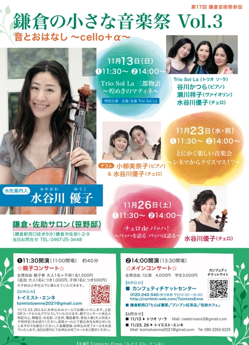 チェリスト水谷川優子が、鎌倉で小さな音楽祭をはじめて3回目。