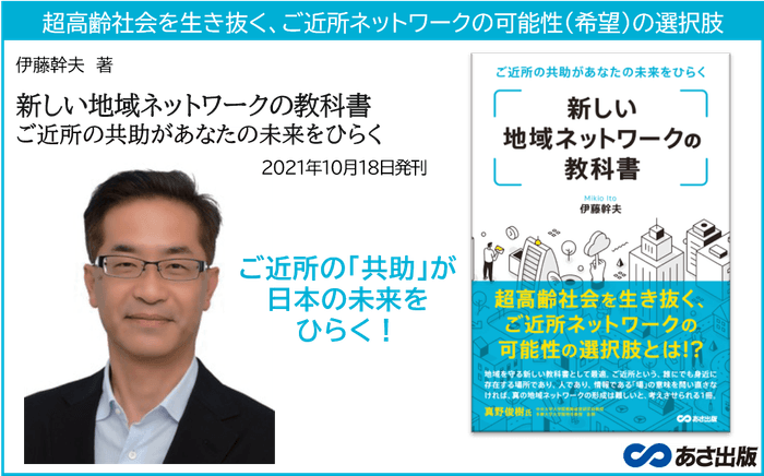 株式会社あさ出版(代表取締役:佐藤和夫、所在地:東京都豊島区)は伊藤幹夫著『新しい地域ネットワークの教科書ご近所の共助があなたの未来をひらく』を2021年10月18日(月)に刊行いたします。