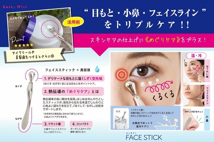 じんわりほぐして流す 熱伝導「めぐりケア」 すっきり!フェイススティック 1本で目もと・小鼻・フェイスラインをトリプルケア