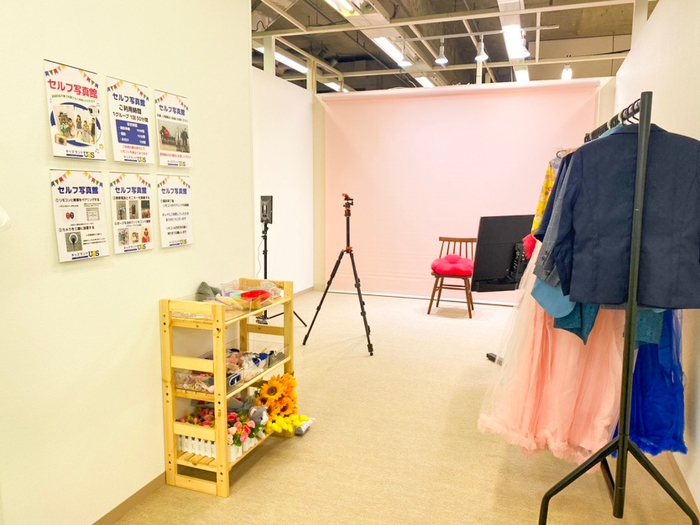キッズランドUSで遊んだ思い出を記念にパシャリ!セルフ写真館では、本格的な撮影セットと華やかなドレスやフォーマルスーツ等の豊富な衣装や小物を追加料金なしでご利用いただけます。ご家族で気軽に記念撮影をお楽しみください。