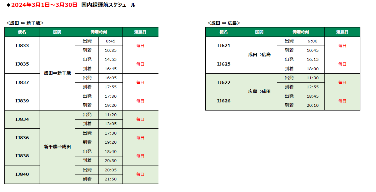 スプリング・ジャパン 2024年1月5日~3月30日 国内線冬ダイヤの販売開始について