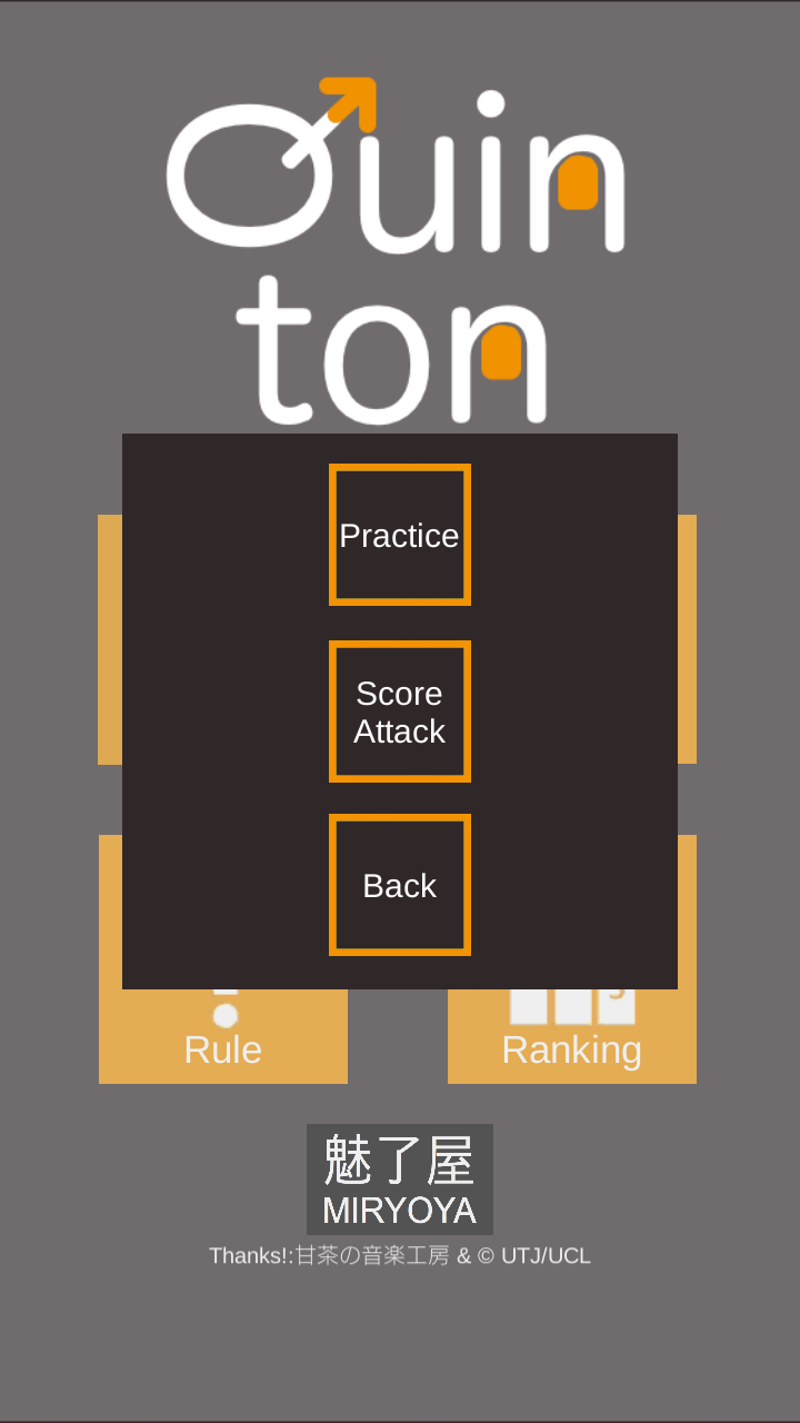 練習モードです。成功するか失敗するかによって、音声によってリアクションをしてくれます。成功すれば良いリアクション、失敗すればそれなりのリアクションが返ってきます。練習をして、自信がつきましたら、ScoreAttackモードに挑戦してみてください。