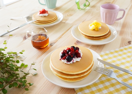卵1個と牛乳80mlを加えるだけで、手軽に直径約12cmのホットケーキを3枚焼くことができます。これまで、残った粉の衛生面を気にしていた方や、賞味期限までに使い切れず捨ててしまったという経験をお持ちの方からも好評です。