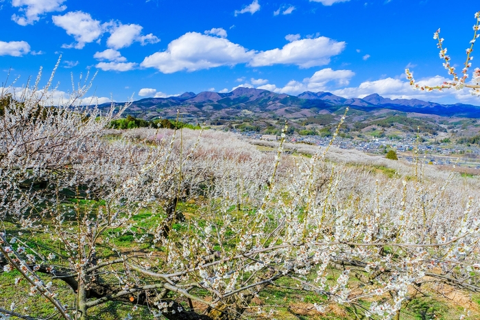 古くから梅の産地として有名な群馬県には「ぐんま三大梅林」といわれる、安中市の「秋間」高崎市の「榛名」「箕郷」の3つの梅林が広がっています。一面を埋めつくす梅の花の可憐な姿、辺りに広がる梅の香りを全身でお楽しみください。