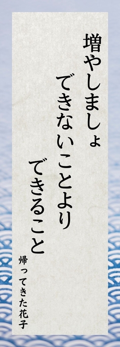 『増やしましょ できないことより できること』 帰ってきた花子 様(医師)