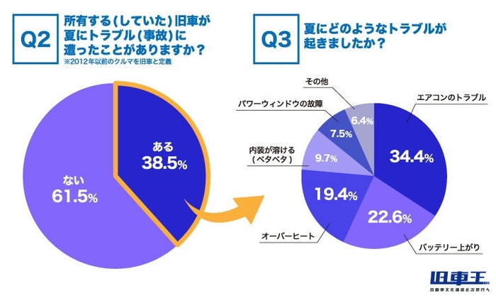 旧車王が旧車に興味があるユーザーを対象に大調査!旧車乗りの4割が夏のトラブルに遭ったことがある!夏の旧車に多いトラブル、2位は「バッテリー上がり」、1位は?