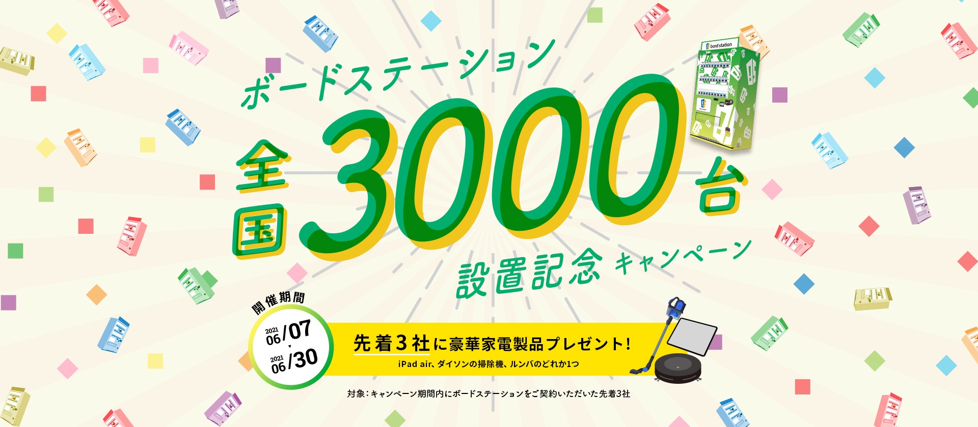 累計設置台数3,000台突破を記念し、新規でご契約いただいたお客様を対象にキャンペーンを実施します。