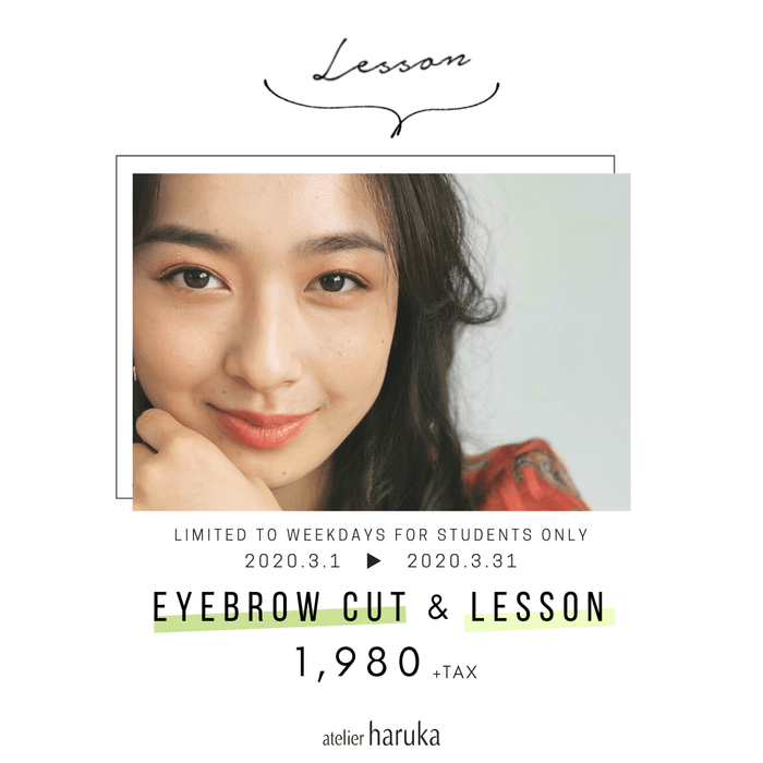 全国62店舗でヘアメイク&ネイルサービスを提供する「アトリエはるか」(株式会社アトリエはるか、所在地:愛知県名古屋市、代表取締役社長:岩井 良子)は、学生限定企画として、【公式インスタグラムをフォロー+学生証提示】で、描き方レッスン付き!眉カットメニューを、1,980円(税別)にてご提供します。