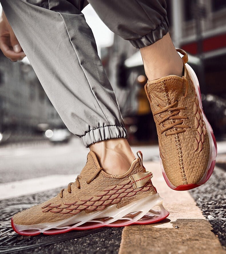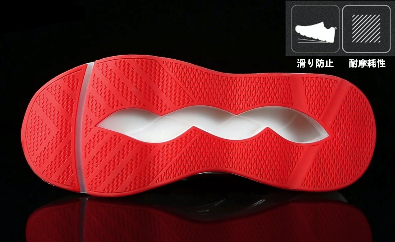 ソールは耐久性の高いTPU樹脂を使用しています。3D減震網目構造によりウォーキング、ランニング、ジャンプ着地時の衝撃を吸収してくれます。そして程よい反発力でクッションの役割を果たし、膝への負担を減らしてくれることで、けがを防止し、運動パフォーマンスが下がるのを防いでくれます。