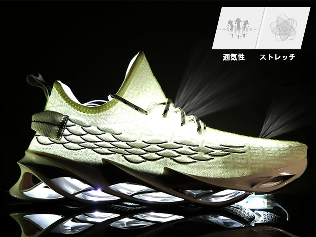 ■ソールは3D減震網目構造で着地時の衝撃を吸収。膝への負担を減らしてくれます。