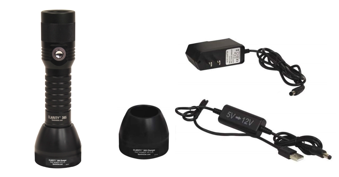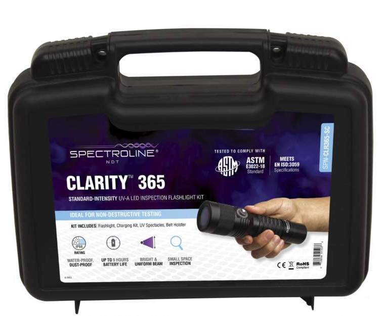 『CLR-365シリーズ』は、アメリカのSpectroline社が開発した、革新的なLEDブラックライトです。非破壊検査用のハンディブラックライトとして、世界初となる9時間の動作時間(2019年7月現在 自社調べ)を実現しました。