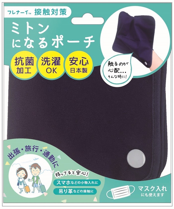 「接触対策」として直接接触、間接接触のどちらにも対応するミトンになるポーチ。