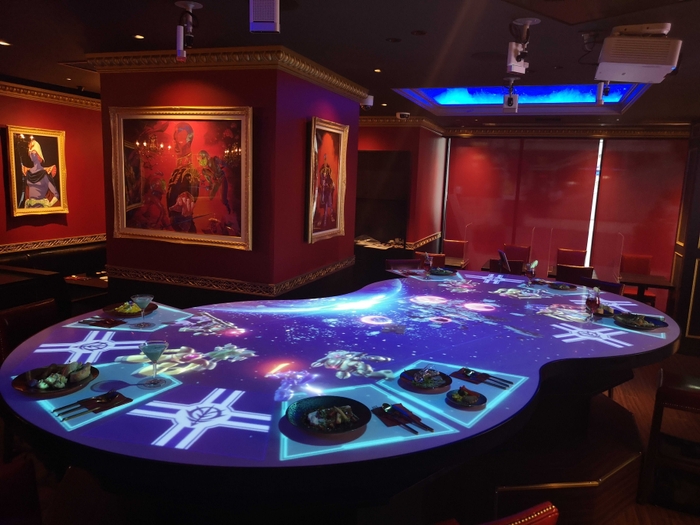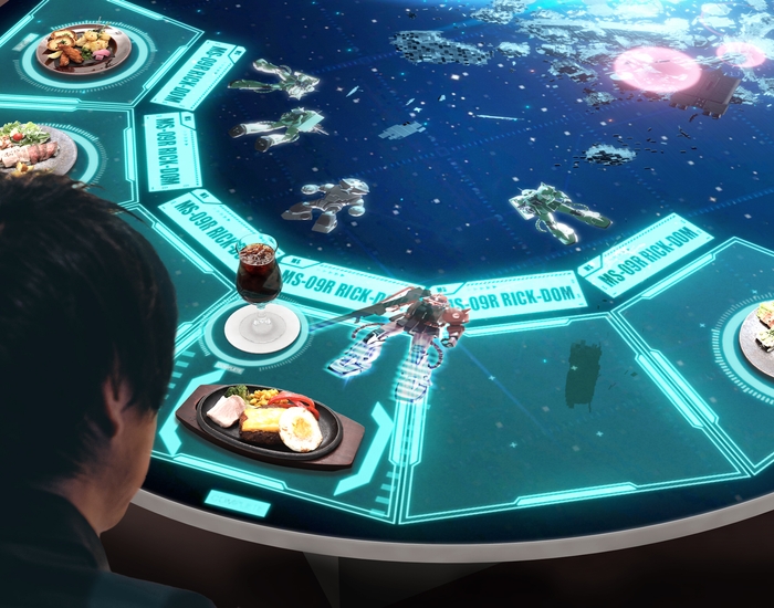 ジオン公国軍のBARで戦闘シミュレーションをしながらお食事体験 プロジェクションを使用したインタラクティブテーブルが登場
