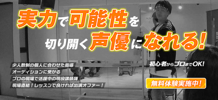 「プロのレベルを上げ、生き残れる声優を生み出す」という趣旨から創設されましたので、2年間専門学校に通うよりも断然成長できる事を約束します。